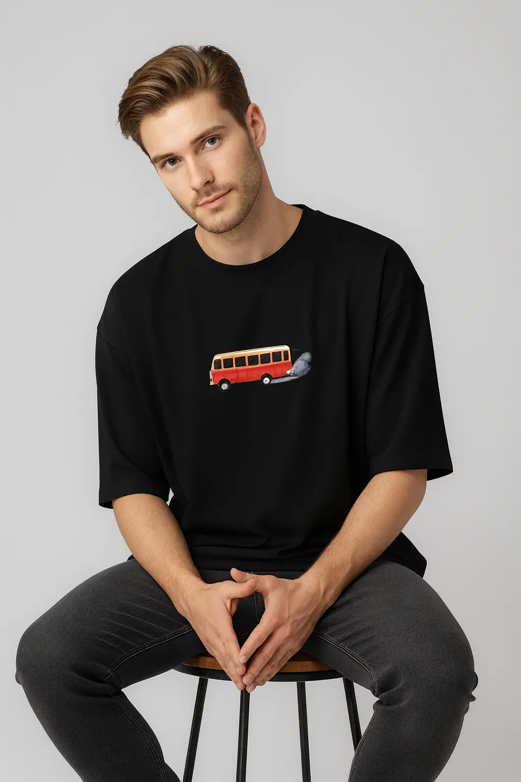 This T-shirt pays homage to Kerala’s legendary KSRTC bus service — a true symbol of every Malayali’s journey. The front features a minimalist red-and-yellow KSRTC bus in motion, representing the rush and rhythm of Kerala roads. The back expands the story with a witty visual — the bus speeding away as a passenger runs behind, capturing the relatable everyday chase every Malayali knows too well. With its clean illustration style and nostalgic humor, this design blends cultural pride and everyday realism, making it the perfect pick for those who grew up with the roar of KSRTC engines in the background.